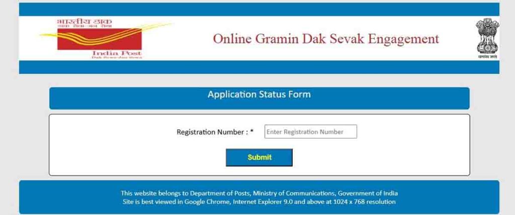 सबसे पहले, भारतीय डाक की आधिकारिक वेबसाइट indiapostgdsonline.gov.in पर जाएं। होमपेज पर “Step 2: Apply Online” सेक्शन को खोजें और क्लिक करें। यहां आपको “आवेदन स्थिति” (Application Status) का विकल्प मिलेगा। अपना पंजीकरण नंबर और आवश्यक विवरण दर्ज करें, फिर “सबमिट” बटन पर क्लिक करें। आपकी आवेदन स्थिति स्क्रीन पर प्रदर्शित हो जाएगी।