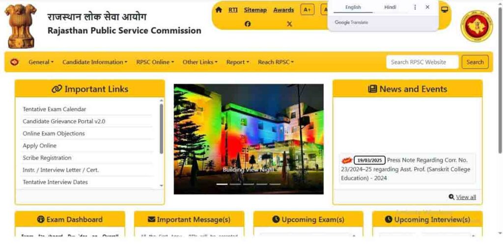 आधिकारिक वेबसाइट पर ट्रैफिक अधिक होने पर पुनः प्रयास करें या RPSC हेल्पलाइन से संपर्क करें।